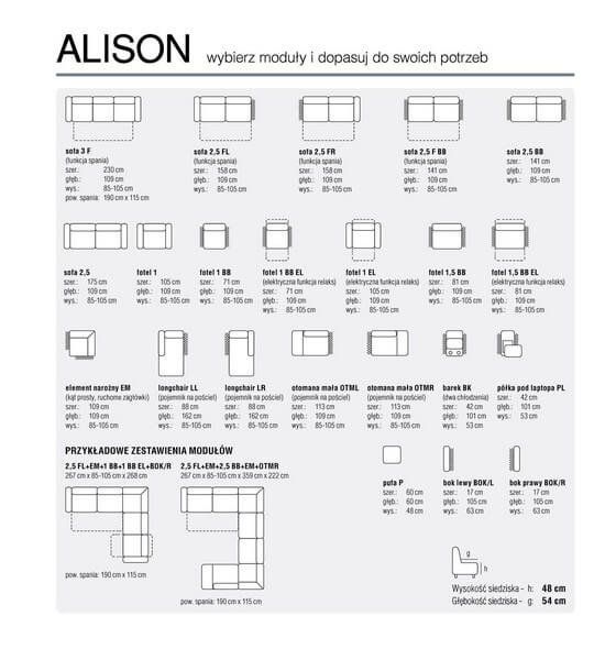 Narożnik Alison to wyjątkowe połączenie elegancji i stylu. Alison łączy atrakcyjny wygląd z funkcjonalnością a perfekcyjne wykończenie zadowoli najbardziej wymagających.