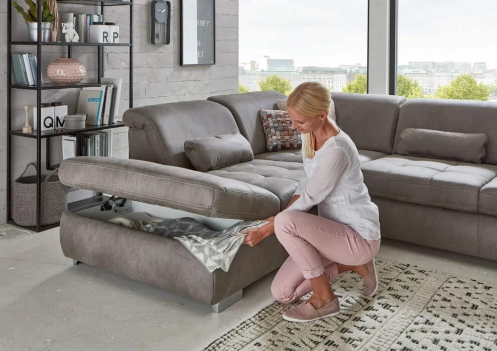 Narożnik został wyposażony w funkcję spania z pojemnikiem na pościel, co pozwala na wygodne przechowywanie dodatkowego zestawu pościeli bez zajmowania dodatkowej przestrzeni. Dodatkowym atutem jest podnoszony pojemnik, która stanowi praktyczne rozwiązanie do przechowywania różnych przedmiotów.