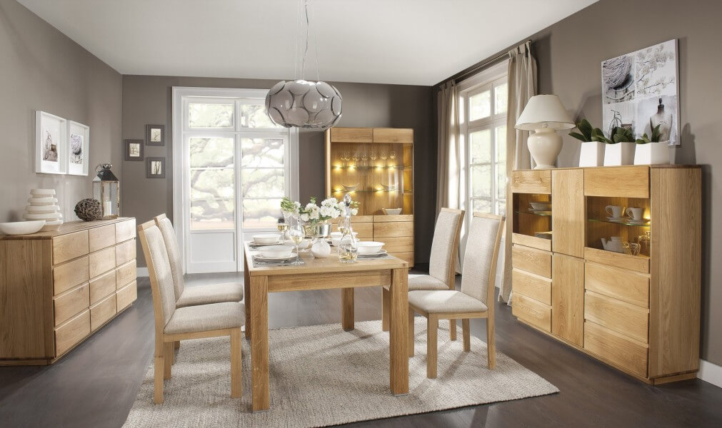 Kolekcja mebli Atlanta dzięki swojemu uniwersalnemu, nowoczesnemu designowi dopasują się do niemal każdego typu wnętrza. W skład kolekcji wchodzą witryny, komody, szafki RTV, stół i krzesła.