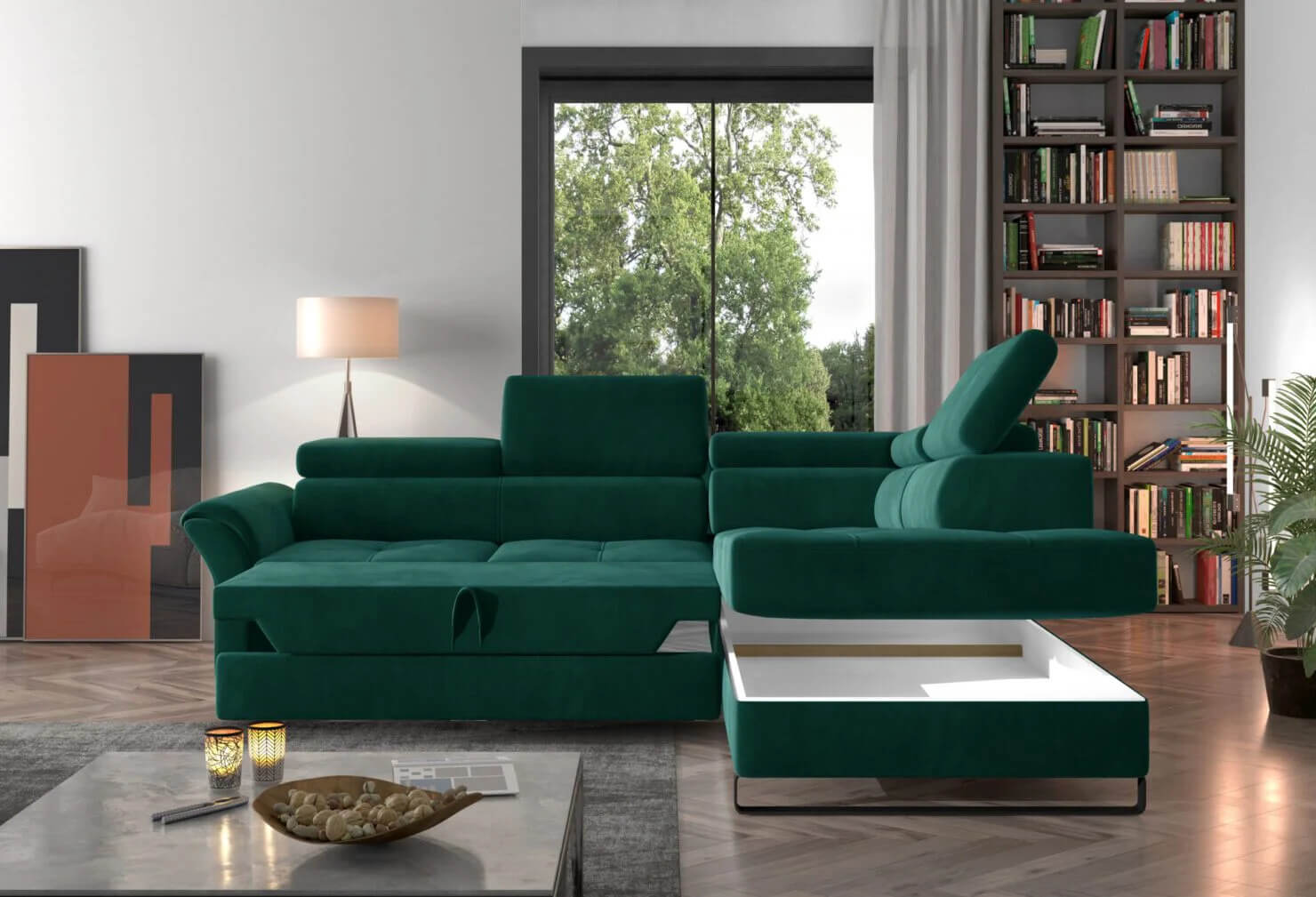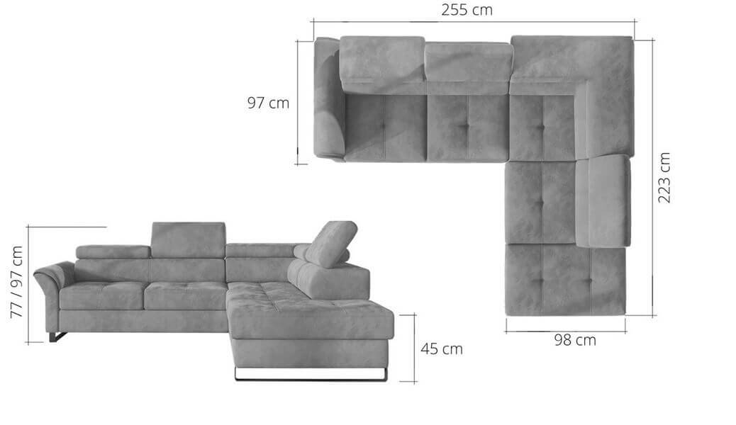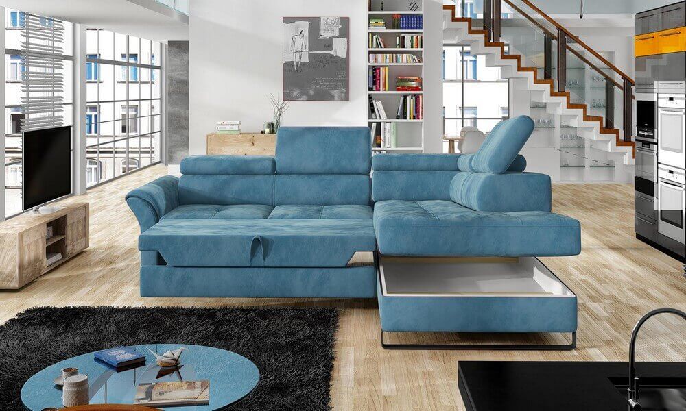 Avanti to wygodny i nowoczesny narożnik, wyposażony w funkcję spania (powierzchnia spania: 122×192 cm) oraz praktyczny pojemnik na pościel.