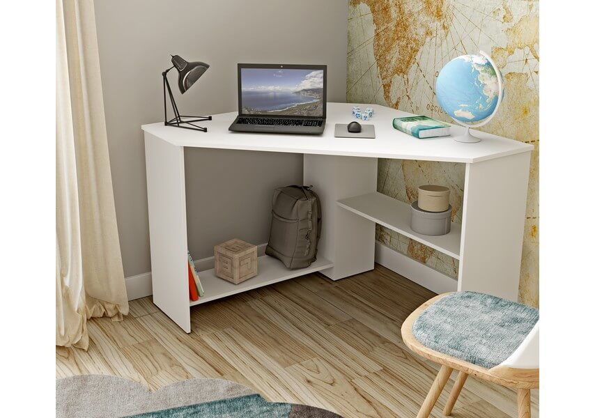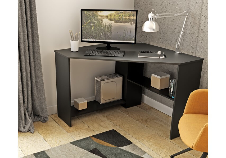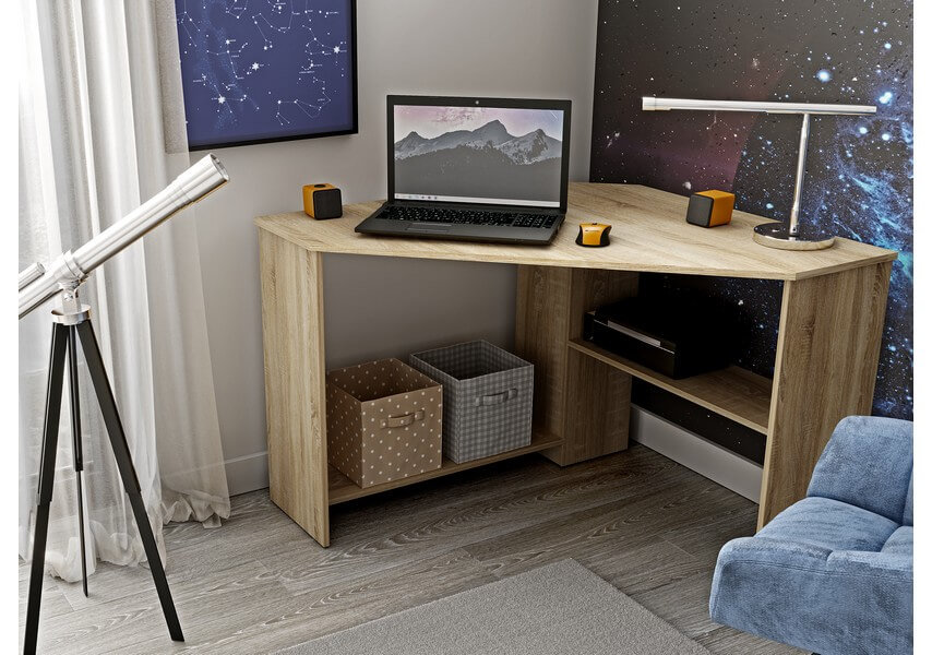 Przestronne, solidnie wykonane biurko do pokoju młodzieżowego, które przypadnie do gustu każdego nastolatka. Rino to idealna propozycja dla każdego, kto potrzebuje zagospodarować narożną przestrzeń w pomieszczeniu. Biurko dostępne jest w 3 kolorach: dąb sonoma, białym i onyx czarny. Biurko Rino posiada 2 półki, które zapewniają dodatkowe miejsce do przechowywania dokumentów, akcesoriów i innych drobnych przedmiotów.