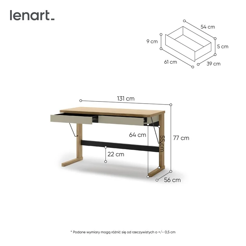 Wykonane z wytrzymałych materiałów, biurko charakteryzuje się solidnym blatem o grubości 32 mm, odpornym na codzienne użytkowanie. Stabilna konstrukcja gwarantuje długą trwałość, a ergonomiczna wysokość oraz przestrzeń na nogi pozwalają na wygodne korzystanie przez wiele godzin.