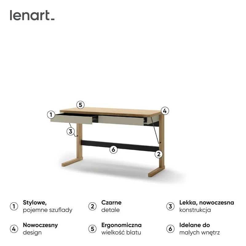 Biurko Ollie OL-06 to praktyczny i stylowy mebel do domowego biura, który sprawdzi się zarówno w przestronnych wnętrzach, jak i mniejszych pomieszczeniach. Jego nowoczesny wygląd oraz dobrze przemyślana konstrukcja zapewniają komfortowe miejsce do pracy.