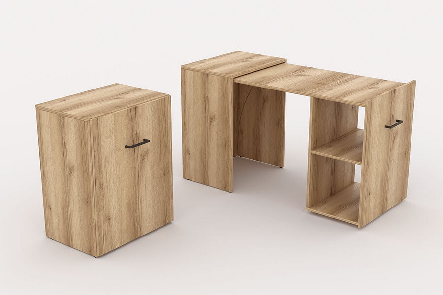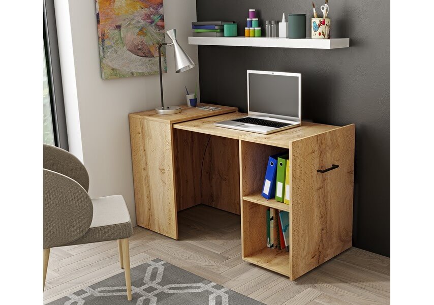 Funkcjonalne, rozkładane biurko do pokoju młodzieżowego, które z pewnością przypadnie do gustu każdego użytkownika. Smart przyda się wszędzie tam gdzie do dyspozycji jest niewiele przestrzeni. Unikalność konstrukcji biurka to wysuwany szeroki blat z szafki. Po zakończeniu pracy i złożeniu ponownie zyskujemy wolną przestrzeń.