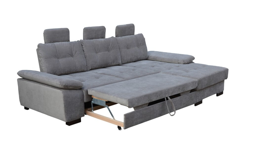 Wymiary: szer. 302/183 cm, wys. 111 cm, gł. 112 cm, pow. spania 150/225 cm