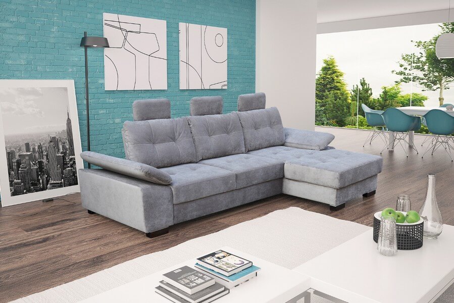 Narożnik Breza zachwyci najbardziej wymagających. Wyposażony jest w praktyczną funkcję regulacji zagłówków i podłokietników a ruchome oparcie dopasuje pozycję ciała użytkownika. Breza posiada funkcję spania i pojemnik na pościel.