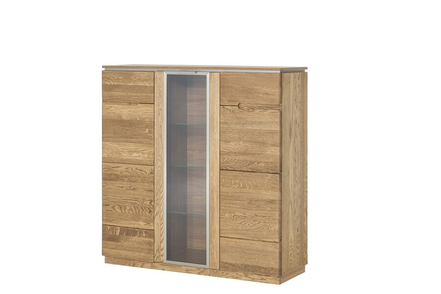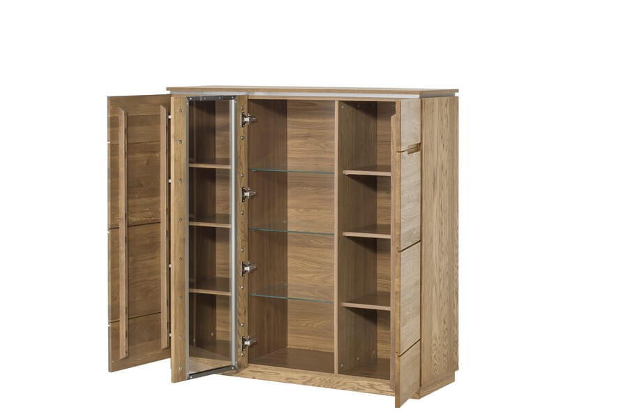 Przeszklona przestrzeń pozwoli wyeksponować ulubione ozdoby, a przestrzeń ukryta za drewnianymi frontami stworzy dodatkowe miejsce do przechowywania. Dzięki temu w Twoim domu zapanuje harmonijny porządek.
