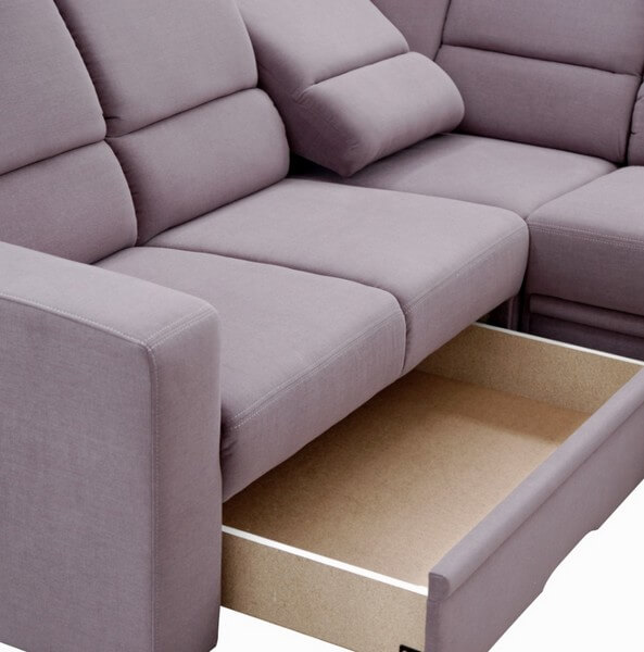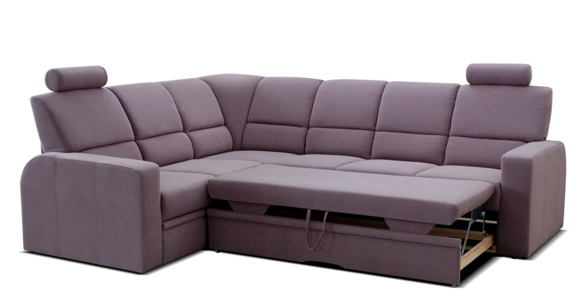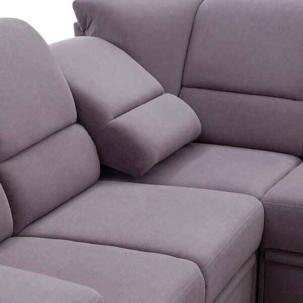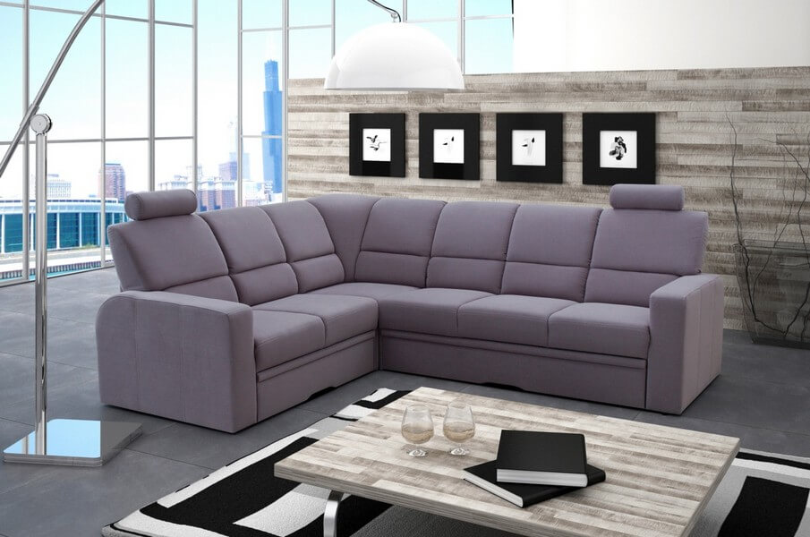 Komfortowy narożnik Chiara 2SK/KS-E/F-3F/KS z ruchomym oparciem i zagłówkami, które nadają wypoczynkowi nowoczesnego stylu. Wyposażony jest w praktyczną funkcję spania i pojemnik na pościel.