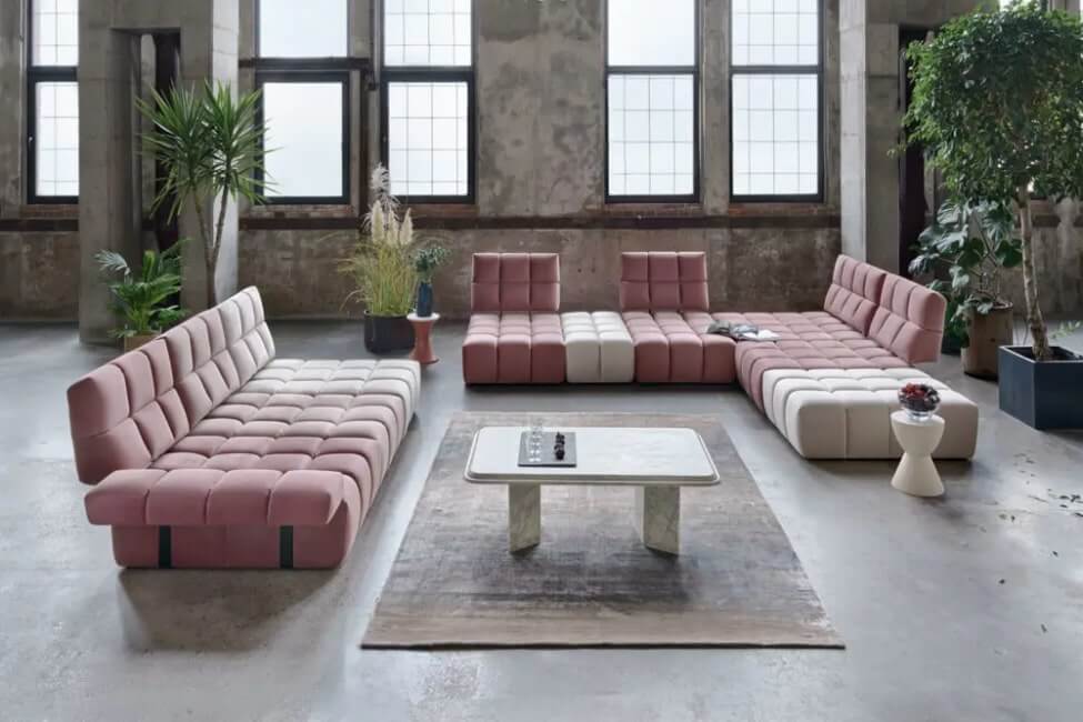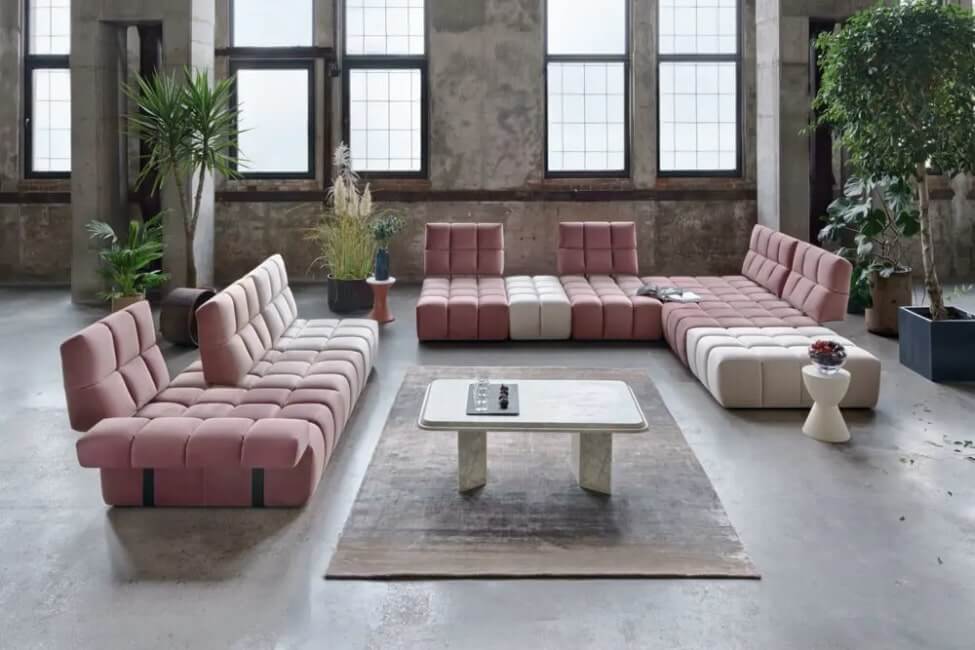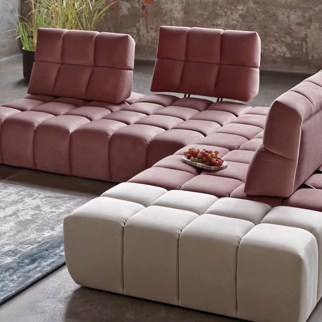 System modułowy – pozwala dowolnie tworzyć zestawienia narożników, sof o wielkościach i kształtach dopasowanych do potrzeb i wymagań rodziny.