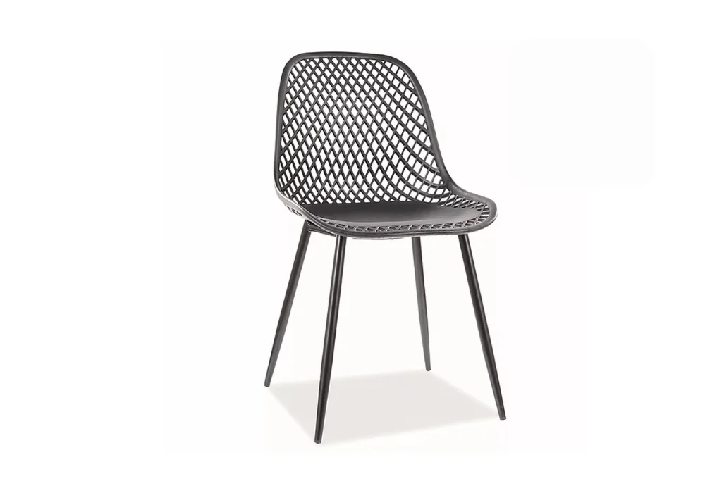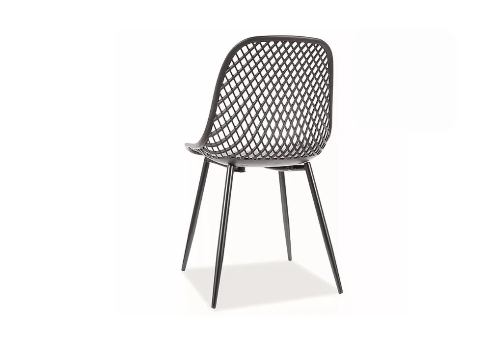 Nowoczesne i wygodne krzesło do jadalni lub kuchni, którego oparcie i siedzisko zrobione zostało z wytrzymałego polipropylenu. Wygodę zapewniają podłokietniki i szerokie siedzisko. Podstawę krzesła tworzą mocne, metalowe nogi w kolorze czarny mat.
