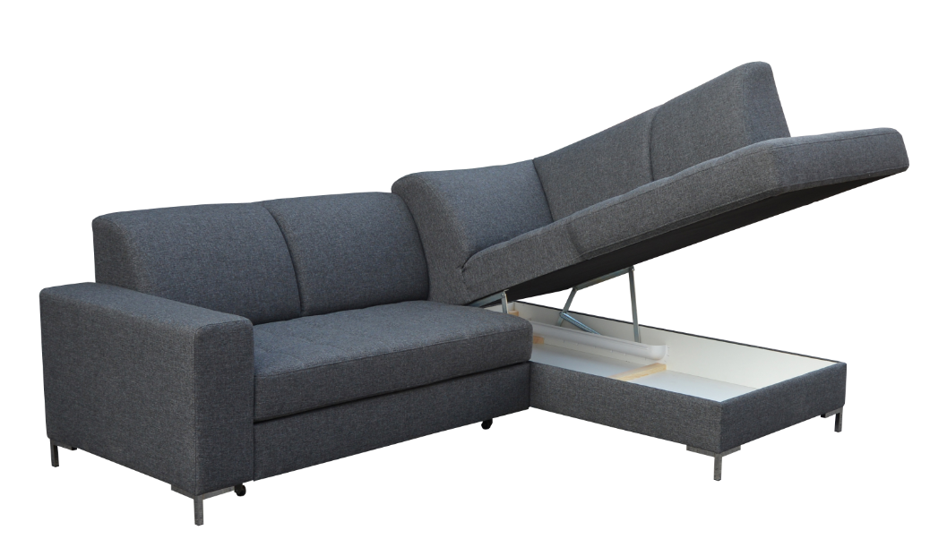 Narożnik Ella 2F-OT/BK zachwyca estetyką wykonania. Posiada praktyczną funkcję spania i pojemnik na pościel.
