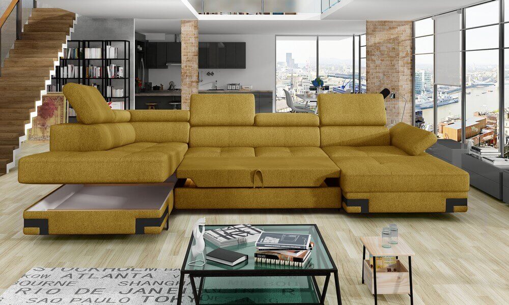 Nie tylko jest idealnym meblem do codziennego odpoczynku, ale także oferuje funkcję spania, będąc doskonałym rozwiązaniem dla tych, którzy szukają dodatkowego miejsca do wypoczynku dla gości. Dodatkowy pojemnik na pościel ukryty w otomanie pozwala na przechowanie dodatkowego kompletu pościeli lub koca, co sprawia, że Emporio jest wyjątkowo praktycznym wyborem.
