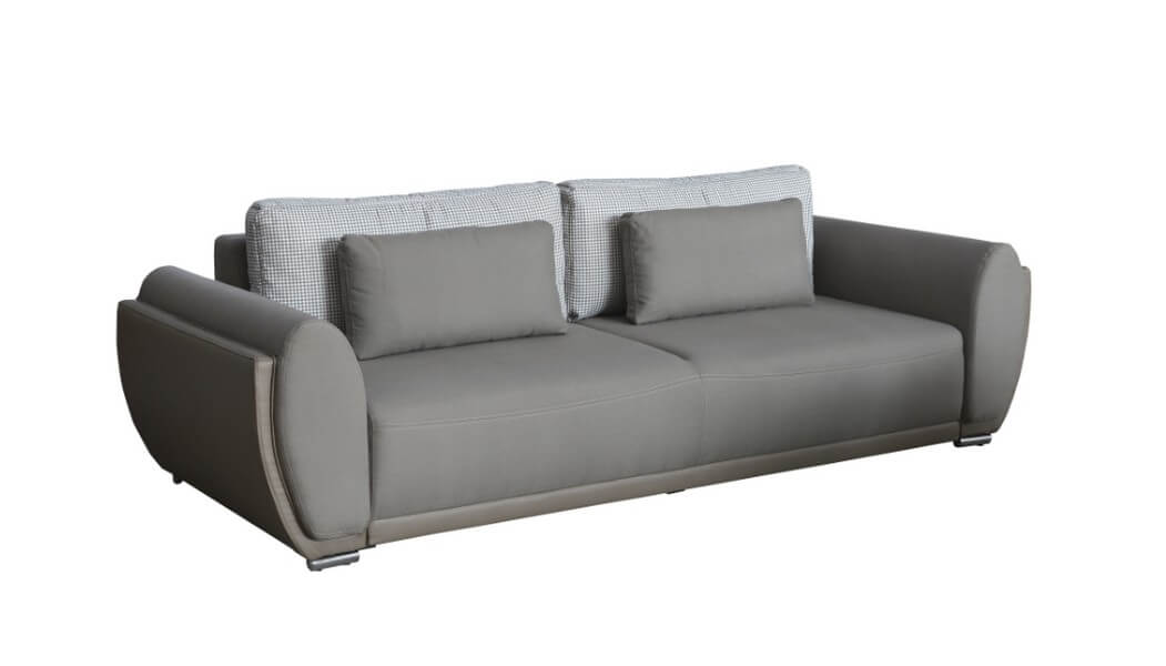 Sofa Finezja IX 3F/BK z funkcją spania i pojemnikiem na pościel. System rozkładania tzw. DL-ka z automatem wspomagającym rozkładanie.