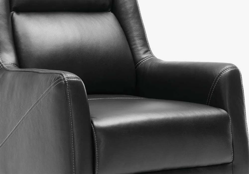 Eleganckie podłokietniki gwarantują pewne podparcie, a ułożenie poduszek tworzy delikatny, falujący rytm.  Subtelnie odchylone oparcie oraz lekko pochylony podnóżek zapraszają do pełnego odprężenia i spokojnego relaksu. Złagodzony kąt nachylenia oparcia i spadzisty podnóżek, pozwalają na błogi odpoczynek. I to mimo kompaktowej formy.