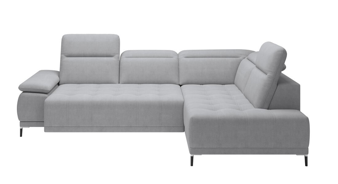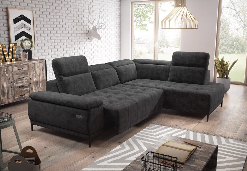 Narożnik Focus L łączy w sobie prostotę, elegancję i nowoczesność. Posiada regulowane zagłówki i elektrycznie wysuwane siedzisko. Uroku dodają smukłe drewniane nóżki. Delikatne przeszycia i pikowania dodają gustownego urozmaicenia.