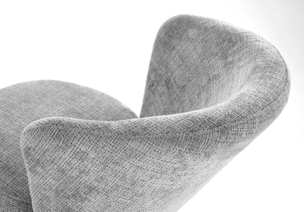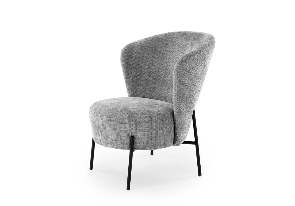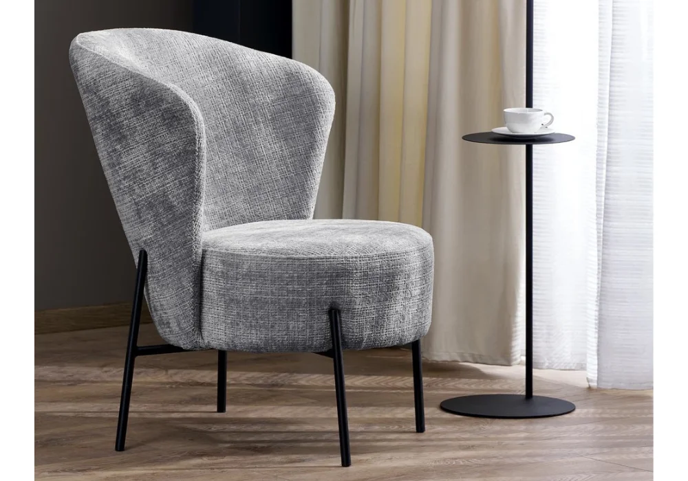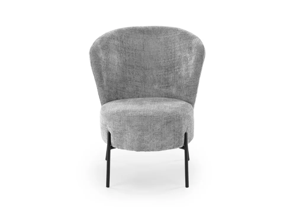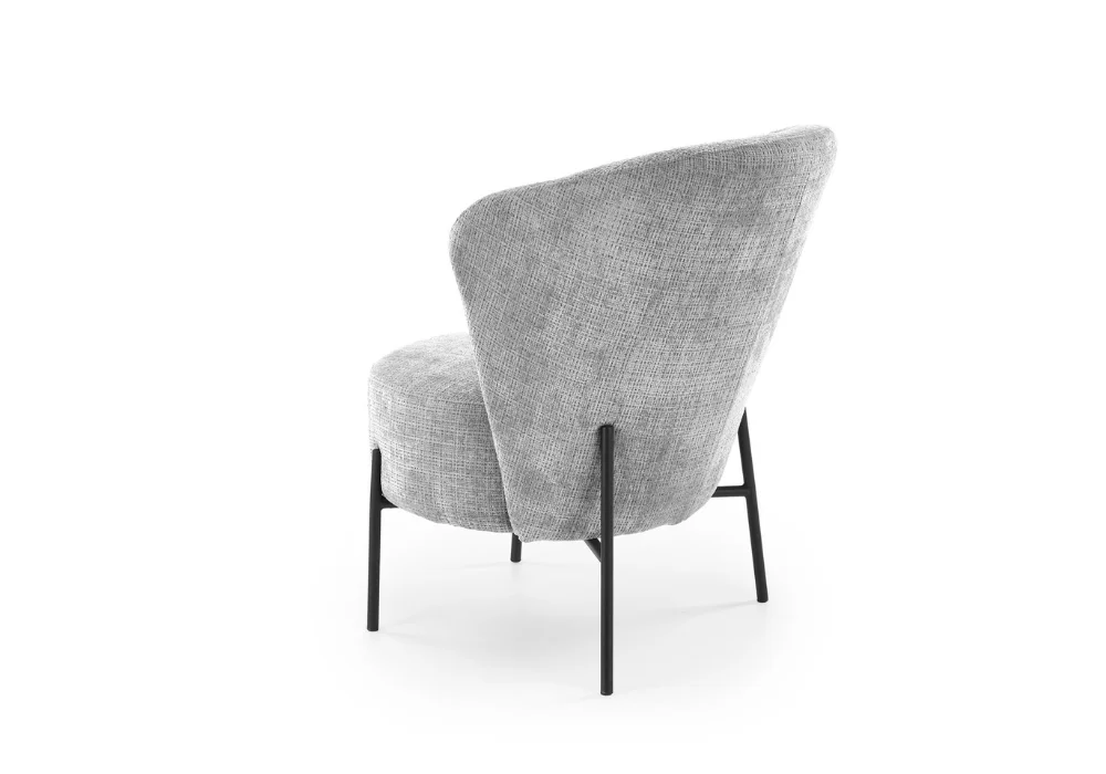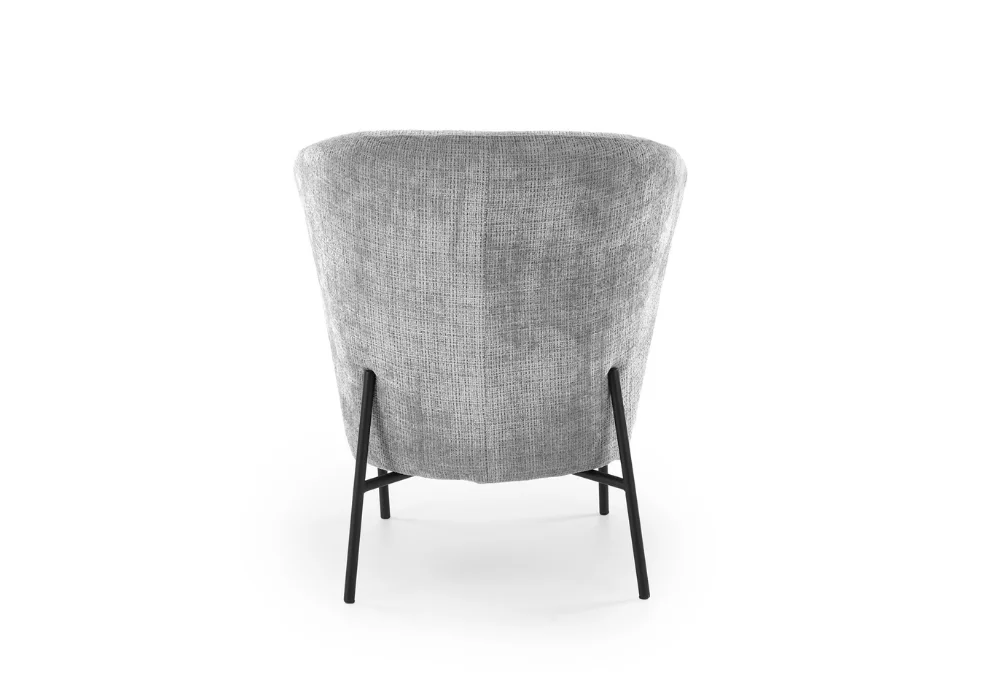Tapicerka o delikatnej strukturze w połączeniu z minimalistycznymi, czarnymi nogami ze stali malowanej proszkowo nadaje meblowi lekkości i wizualnej równowagi. Dzięki temu fotel znakomicie prezentuje się zarówno w modernistycznych salonach, jak i bardziej klasycznych przestrzeniach, wprowadzając do wnętrza nutę przytulnego stylu.