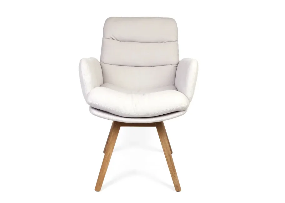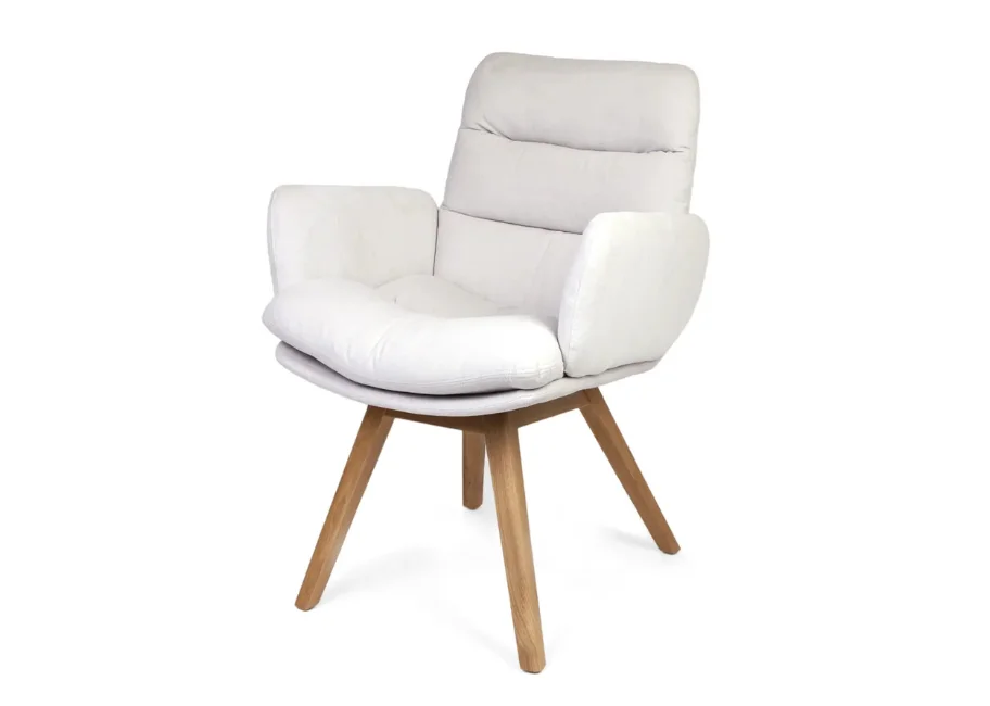 Jonathan to połączenie naturalnych materiałów i wyjątkowego komfortu. Solidne, drewniane nogi zapewniają stabilność, a miękkie siedzisko i ergonomiczne podłokietniki gwarantują wygodę podczas odpoczynku.