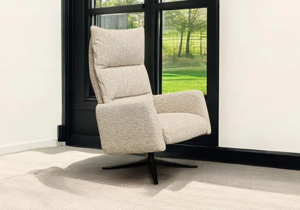 Rino oferuje regulowany zagłówek i odchylane oparcie z możliwością zablokowania wybranej pozycji za pomocą mechanizmu sprężyny gazowej. Te funkcje pozwalają dopasować fotel do indywidualnych potrzeb użytkownika, zapewniając stabilne i wygodne podparcie podczas odpoczynku. Obrotowa podstawa zwiększa swobodę ruchów, a opcjonalny podnóżek umożliwia jeszcze pełniejsze odprężenie. Obicie dostępne w gamie wytrzymałych i łatwych w czyszczeniu tkanin i skór.