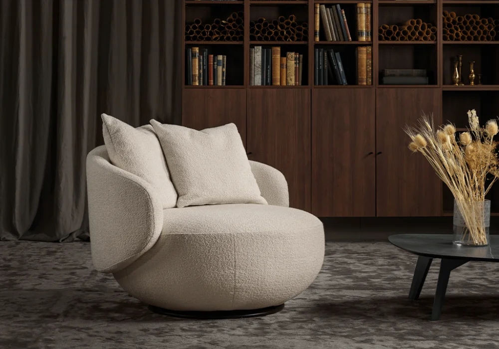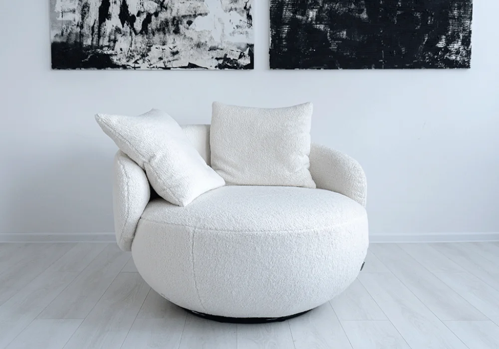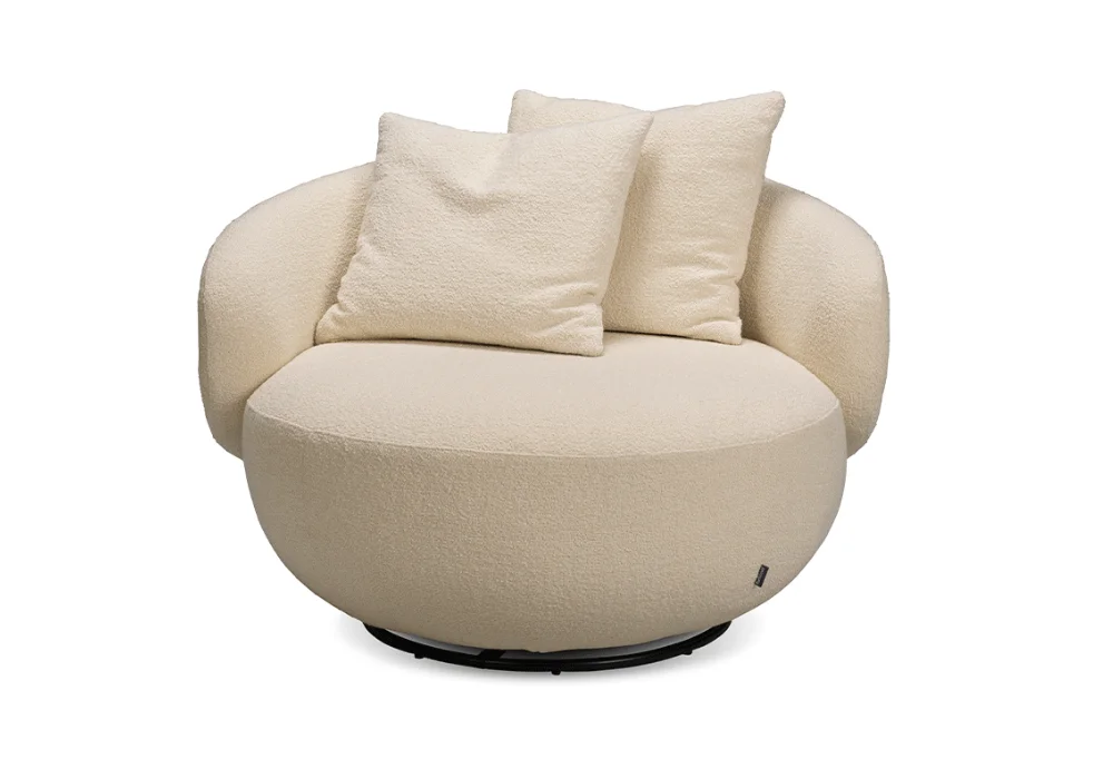 Rondo to wyjątkowy fotel w kształcie półkola, zaprojektowany z myślą o zapewnieniu wygody i przyjemności dla dwóch osób. Jego delikatnie zaokrąglone linie i miękkie poduszki oparcia z topem pierzowymi, tworzą przytulną i relaksującą atmosferę. Ten komfortowy dwuosobowy fotel został również wyposażony w funkcję obrotu, umożliwiającą łatwe przemieszczanie się w ciasnych przestrzeniach lub ustawieniach.