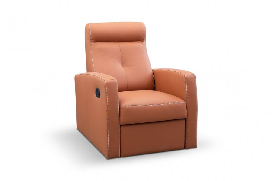 Fotel Marco to elegancki mebel zaprojektowany z myślą o relaksie i wygodzie. Manualna funkcja relaksu umożliwia łatwe dostosowanie kąta oparcia i podnóżka poprzez delikatne przemieszczanie ciała.