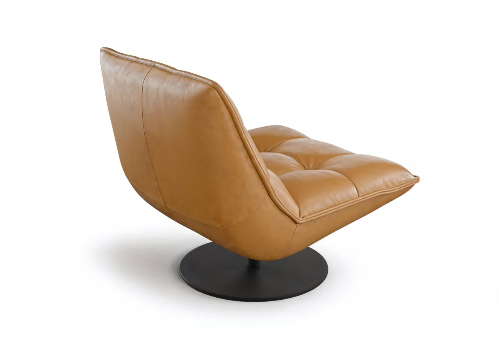 Fotel Zen łączy elegancję ze świetnym komfortem – pikowane siedzisko, wysoka nóżka i funkcja obrotowa sprawiają, że wypoczynek staje się prawdziwą przyjemnością. Solidne wypełnienie i sprężyny faliste gwarantują wygodę przez lata, a skórzana tapicerka nadaje wnętrzu luksusowego charakteru.