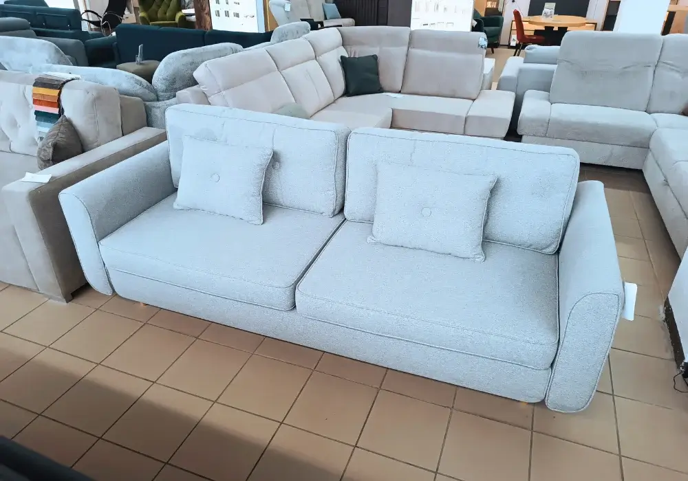 Komfortu użytkowania technologia podwójnego sprężynowania co gwarantuje jednakową jakość snu na obu częściach sofy. Sofa tapicerowana w tkaninie Arte 84 b (zobacz zdjęcie).
