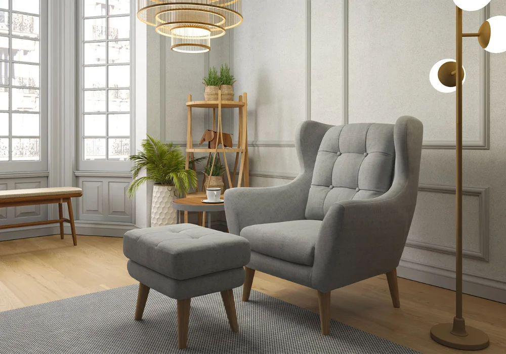 Mebel wyróżnia się solidnym, miękkim siedziskiem oraz doskonale wyprofilowanym oparciem, dzięki czemu odpoczynek zamienia się w prawdziwą przyjemność. W zestawie znajduje się także funkcjonalny podnóżek – idealny, by rozprostować nogi po długim dniu i stworzyć prywatną strefę relaksu.