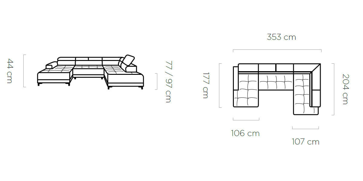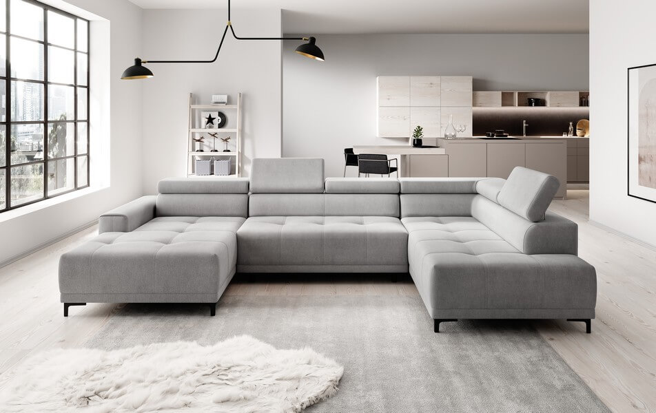 Hugo XL to komfortowy i innowacyjny narożnik wyposażony w regulowane zagłówki i elektrycznie regulowane siedzisko, zapewniające wysoki komfort użytkowania i pozwolą dostosować komfort wypoczynku do indywidualnych potrzeb użytkowników.