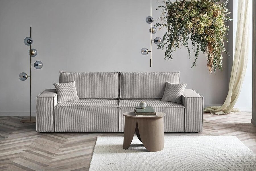 Kanapa Prada marki Mars została wyposażona w funkcję spania typu DL, zapewniając nie tylko wygodne miejsce do siedzenia, ale także praktyczne rozwiązanie dla gości lub noclegów. Charakteryzując się nowoczesną linią mebla, kanapa Prada emanuje stylowym wdziękiem, który idealnie dopasowuje się do współczesnych wnętrz. Tkanina Poso o unikalnej strukturze sztruksu podkreśla nowoczesność kanapy, nadając jej niezwykłego uroku oraz wyjątkowego wyglądu.