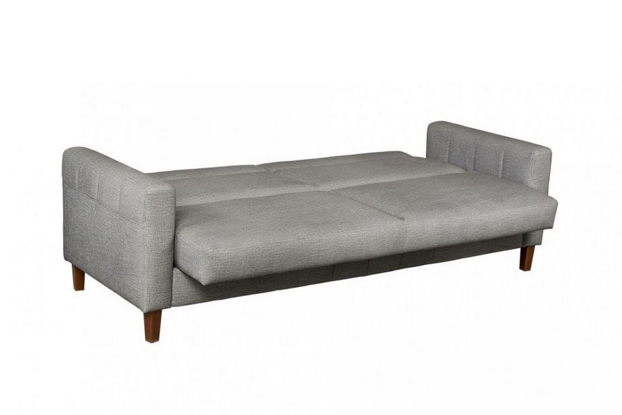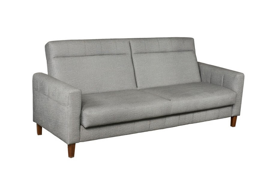 Kanapa Vega z funkcją spania, może być ustawiona przy ścianie. Nóżki dostępne w trzech kolorach: biały, buk i wenge.