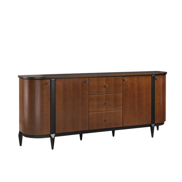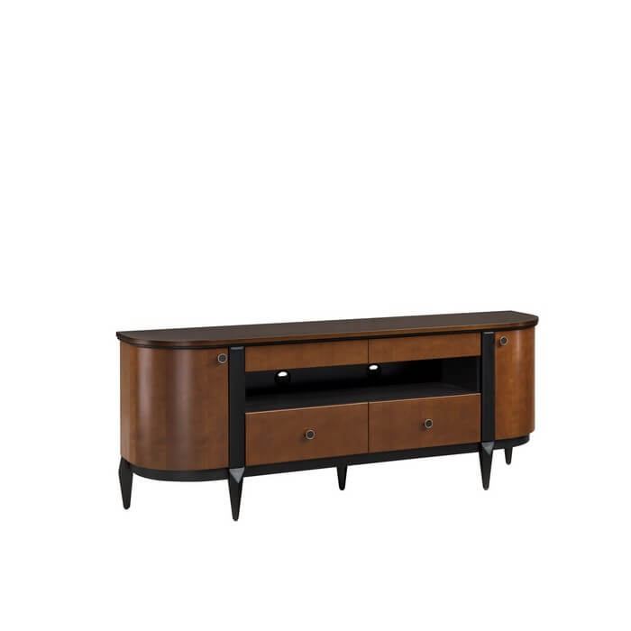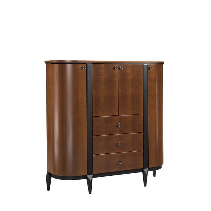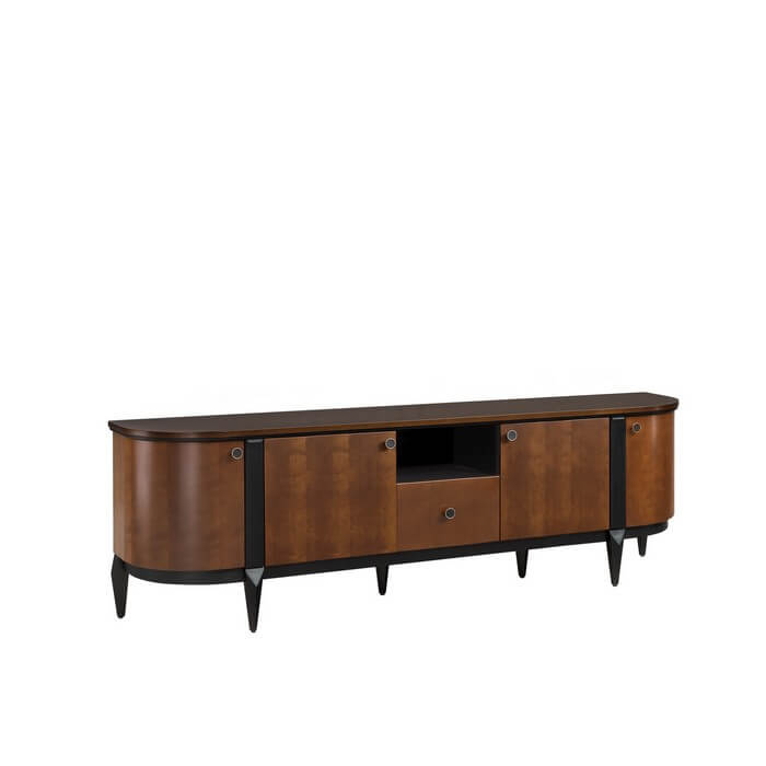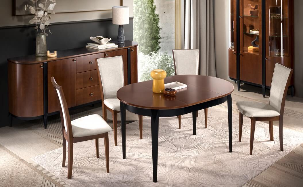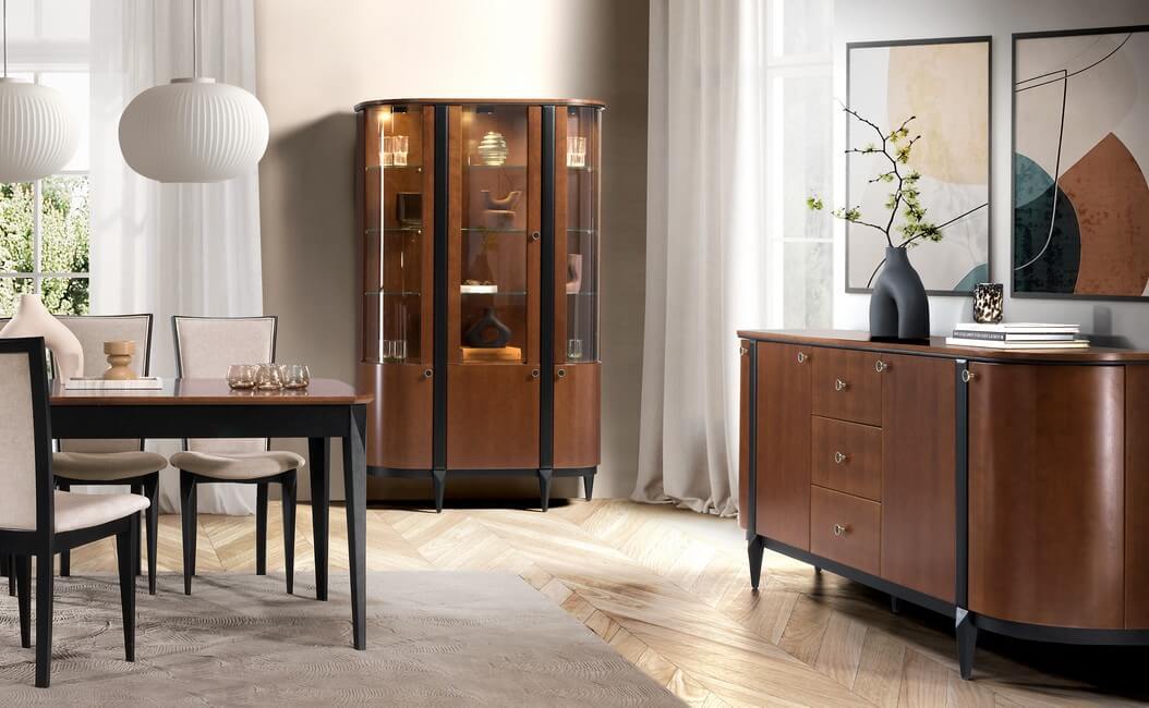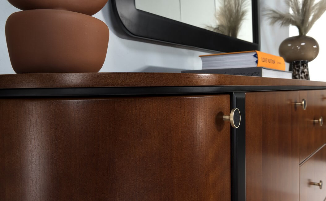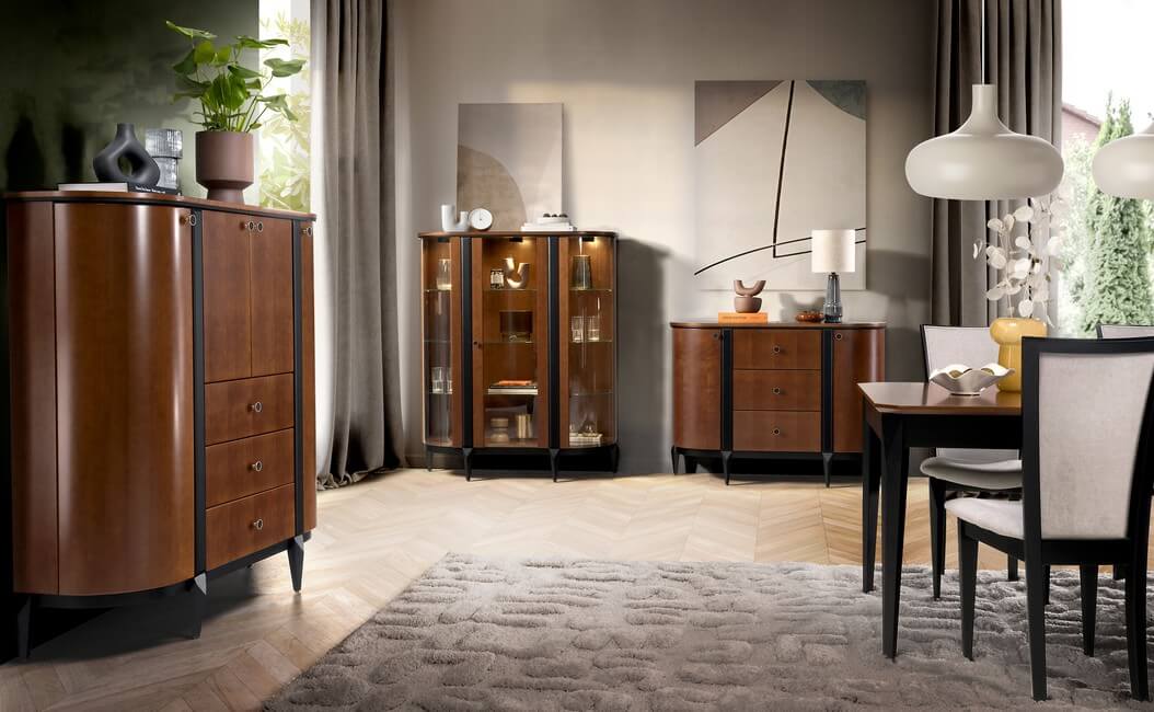 W kolekcji dominuje ponadczasowy, delikatny kolor orzecha, harmonijnie zestawiony z czarnym matowym wykończeniem. Kontrastowe elementy tego stylu przyciągają wzrok, tworząc efektowną grę świateł i cieni, która nadaje przestrzeni unikalny charakter.