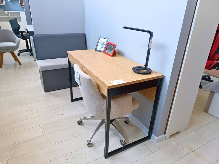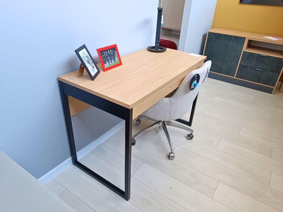 Biurko 120 Mode Concrete Oak to szerokie biurko, które idealnie sprawdzi się zarówno w domowym zaciszu, jak i w profesjonalnym biurze. Wyposażone w dwie szuflady oraz solidne, metalowe nogi malowane proszkowo, oferuje funkcjonalność połączoną z nowoczesnym designem. Blat i fronty szuflad: Wykonane z płyty laminowanej o podwyższonej odporności na wilgoć, co zapewnia trwałość i łatwość w utrzymaniu czystości.