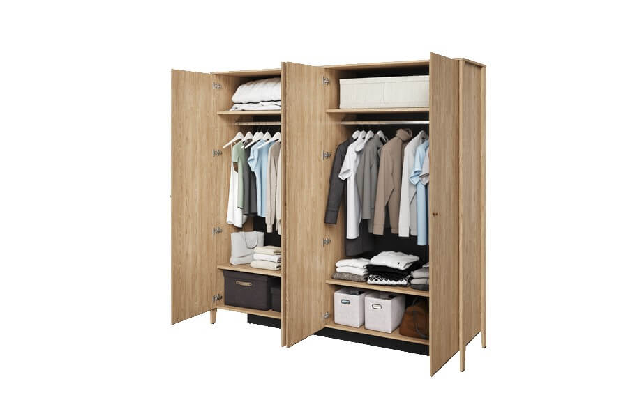 Nie tylko modny design, ale również ogrom przestrzeni do przechowywania wyróżniają tę kolekcję. Pojemna szafa umożliwia łatwe wydzielenie strefy dla Ciebie i Twojej drugiej połówki, a komody zaskakują swoją pojemnością, pomagając utrzymać porządek.