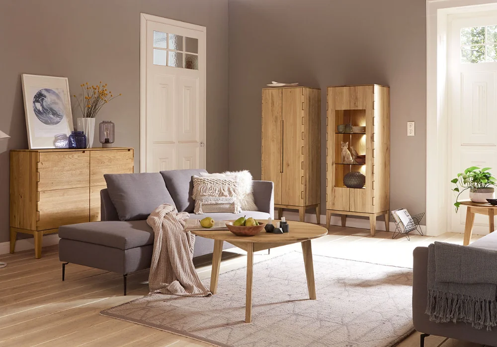 Kolekcja Ora została zaprojektowana do salonu i jadalni, gdzie meble mają pełnić zarówno funkcję praktyczną, jak i estetyczną. Przemyślany układ brył pozwala stworzyć spójną aranżację, a naturalne drewno wnosi do wnętrza spokój i ponadczasowy styl. To meble, które nie podążają za chwilową modą, lecz pozostają aktualne przez lata.
