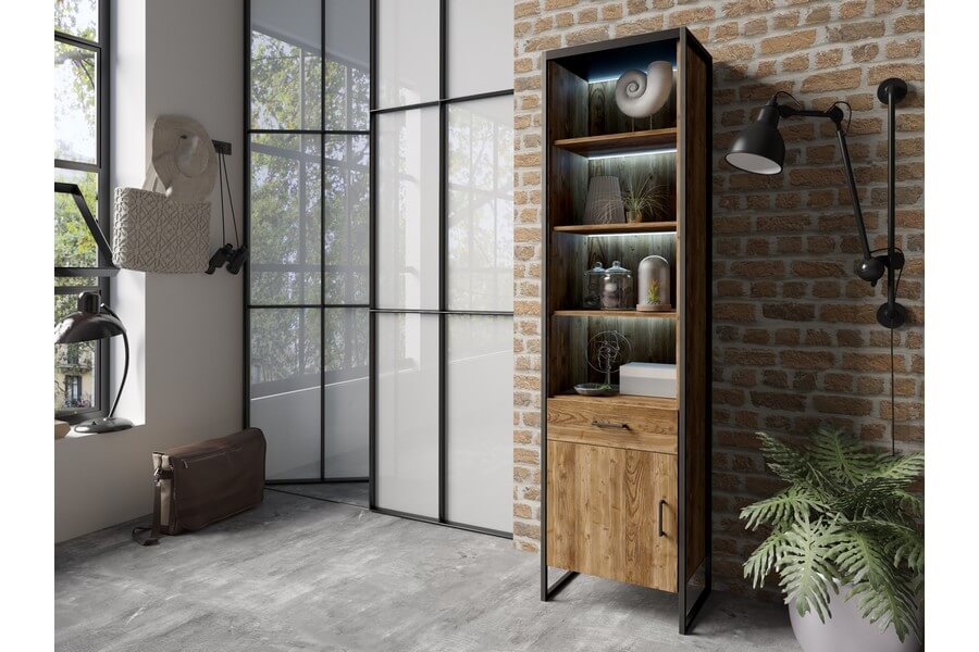 W oferowanej kolekcji znajdują się różnorodne meble, takie jak komody, witryna, regał, które pozwalają na elastyczną aranżację przestrzeni.