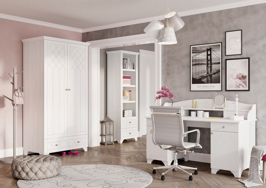 Royal White to kolekcja mebli premium, przeznaczona do pokoju młodzieżowego. Eleganckie, białe meble o minimalistycznym, lecz stylowym grawerze, stanowiące harmonijną syntezę retro i nowoczesności. Z delikatnymi koronami, subtelnie wygiętymi półokrągłymi nóżkami oraz frontami ozdobionymi błyszczącymi kryształowymi uchwytami. Kolekcja spełnia rygorystyczne wymagania dotyczące bezpieczeństwa, posiadają certyfikat bezpieczeństwa TÜV.
