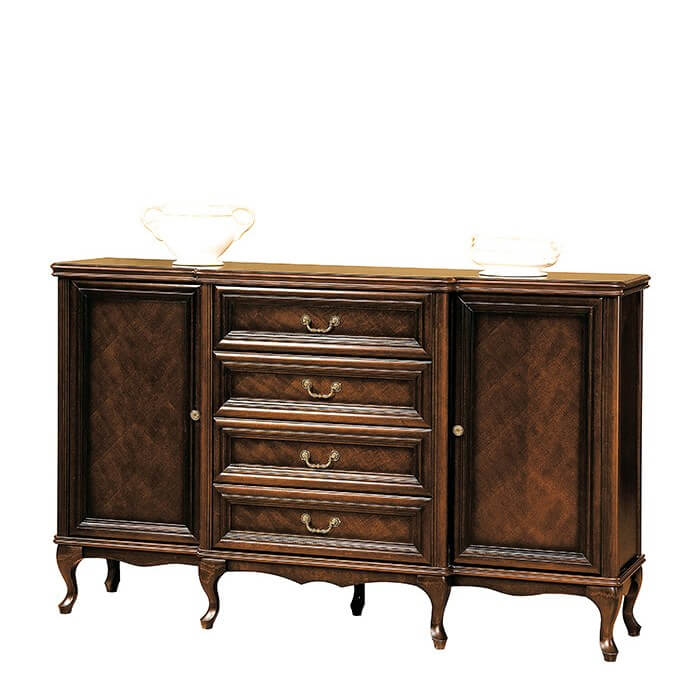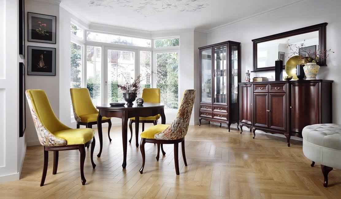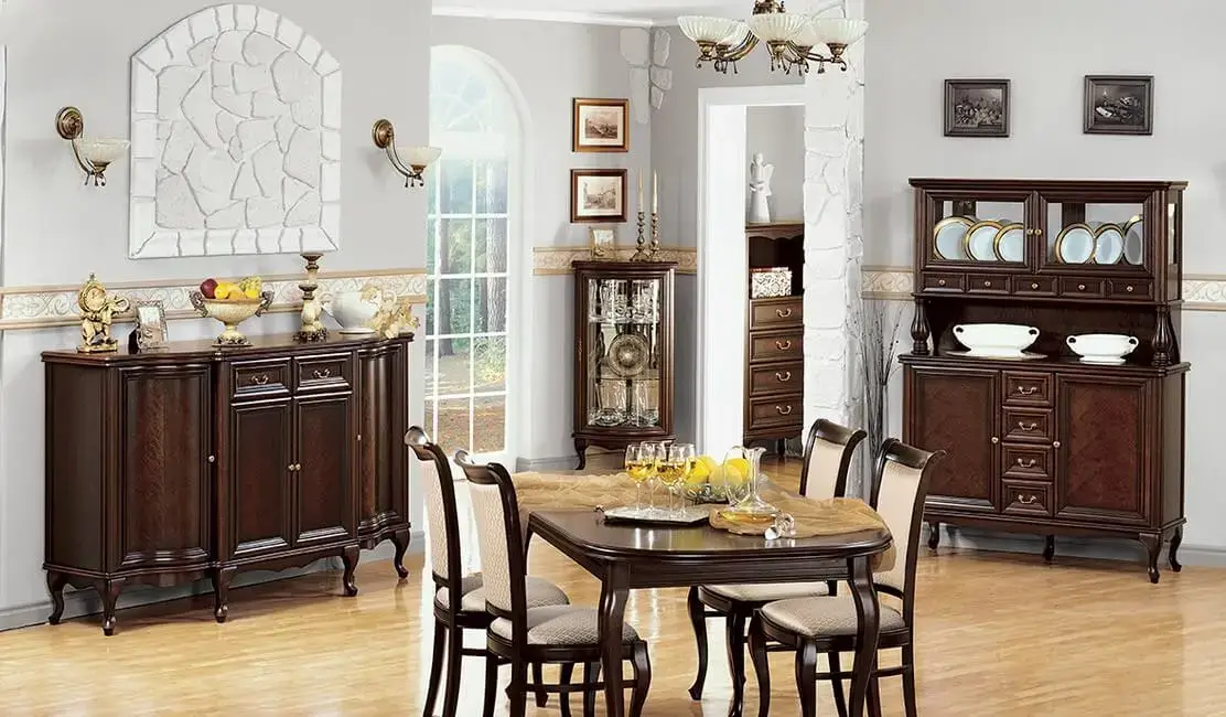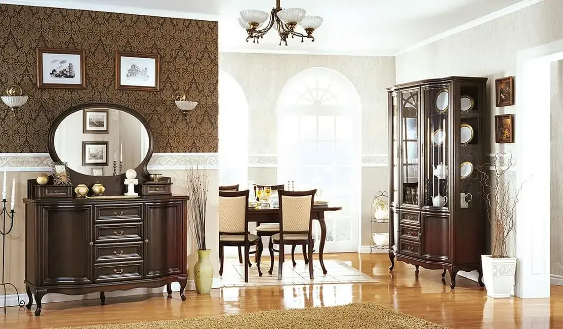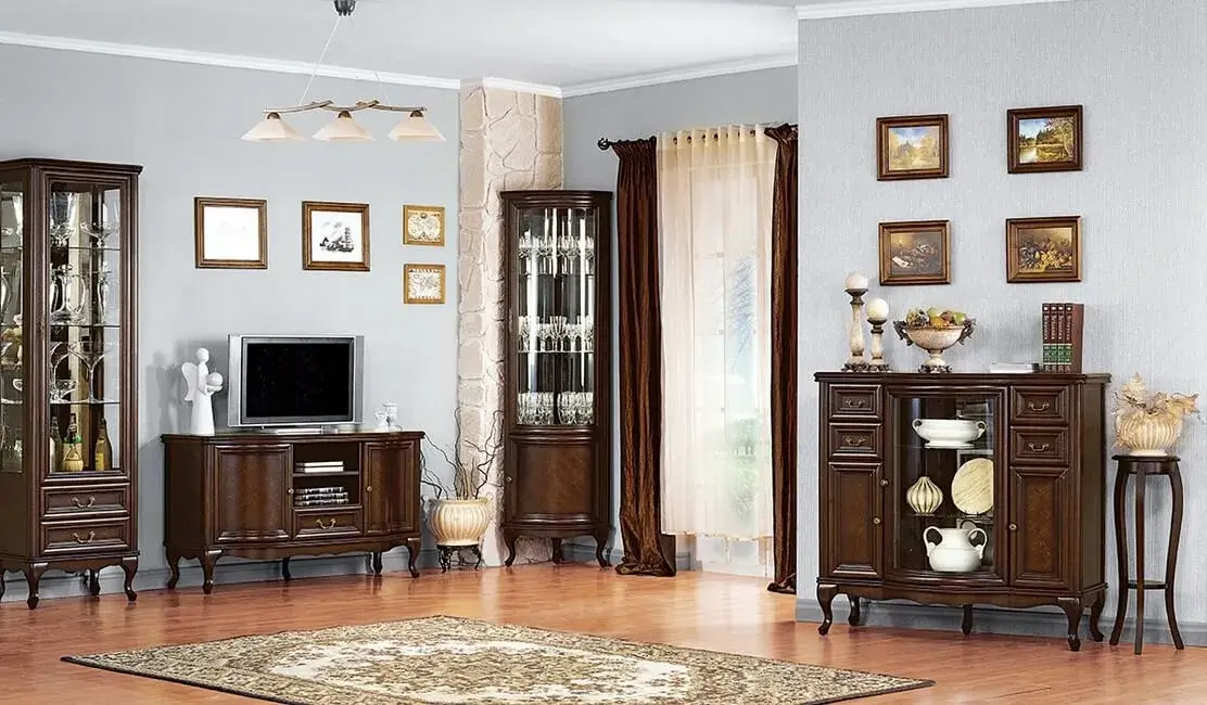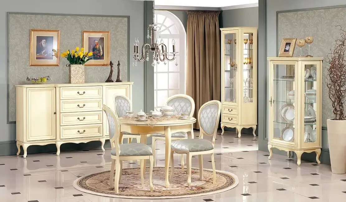 Kolekcja Wersal marki Taranko to wyjątkowa linia mebli, która idealnie dopełni salon i jadalnię, wprowadzając do wnętrza aurę luksusu i klasy. Jej elegancka, klasyczna forma w połączeniu z subtelnymi zdobieniami doskonale podkreśla wyrafinowany charakter każdego pomieszczenia. Stylizowane gięte fronty oraz mosiężne uchwyty przywodzą na myśl tradycję i ponadczasowy szyk.