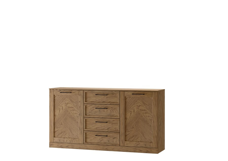 Szuflady i przestronne szafki zapewniają wiele miejsca do przechowywania, dzięki czemu w Twoim wnętrzu zapanuje harmonia i porządek. Komoda 4-drzwiowa Cozy 47 w kolorystyce naturalnego drewna dębowego, będzie ozdobą każdego wnętrza, idealna do pokoju dziennego czy sypialni.