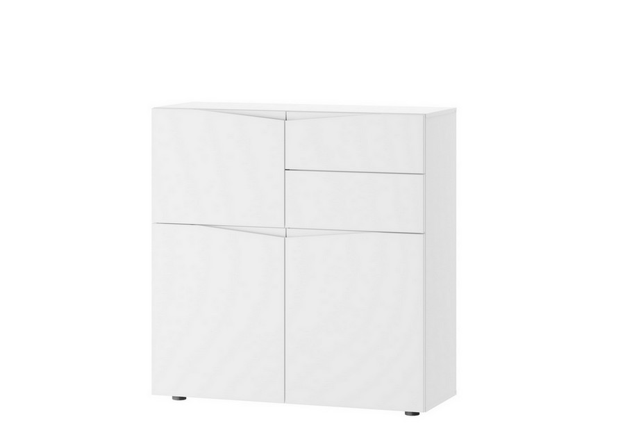 Funkcjonalna komoda zapewniająca dużo miejsca do przechowywania. Przestronne półki i pojemne szuflady pomieszczą wszystkie niezbędne rzeczy i akcesoria. Nowoczesny mebel w uniwersalnym białym kolorze, dzięki którym zaaranżujesz kilka pomieszczeń. Jasna kolorystyka rozjaśni wnętrze.