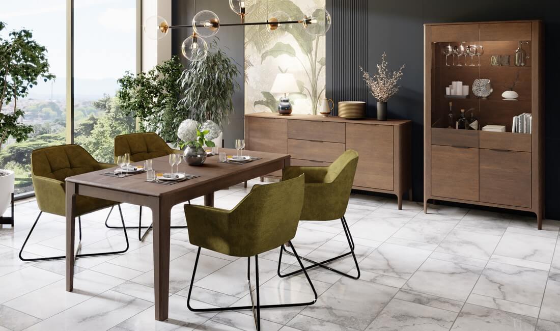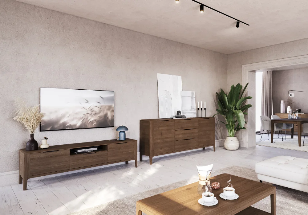 Kolekcja Malawi to propozycja dla osób, które cenią nowoczesne wnętrza z nutą naturalnej elegancji. Została wykonana z drewna jesionu kawowego oraz naturalnej okleiny, co nadaje meblom wyjątkowego charakteru i trwałości. Delikatnie matowe wykończenie, uzyskane za pomocą ekologicznych lakierów, uwydatnia naturalne piękno drewna, tworząc przytulną i wyważoną przestrzeń.