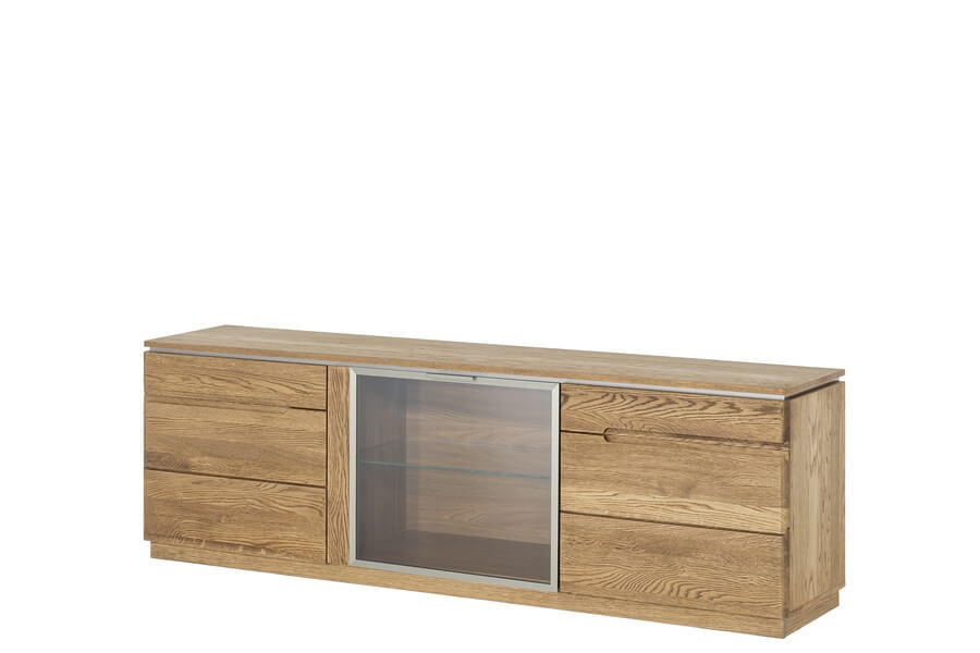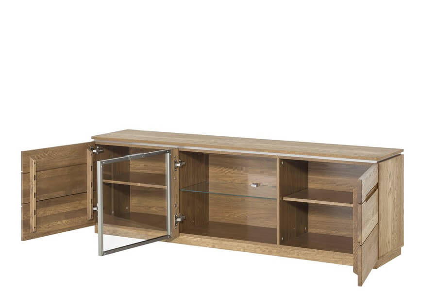 Komoda posiada dwoje drzwi pełne i przeszklone a środku można znaleźć przestrzeń do schowania potrzebnych przedmiotów, dzięki czemu bez trudu zaprowadzisz porządek w swoim domu.
