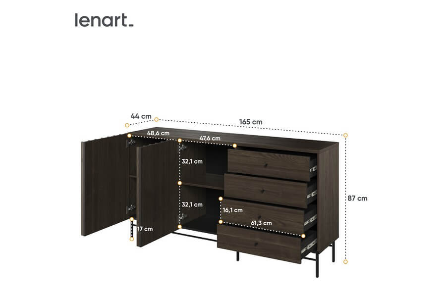 Wymiary: szer. 165 cm, wys. 87 cm, gł. 44 cm