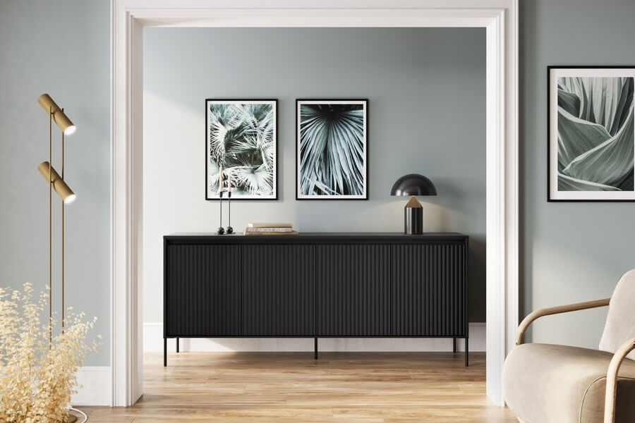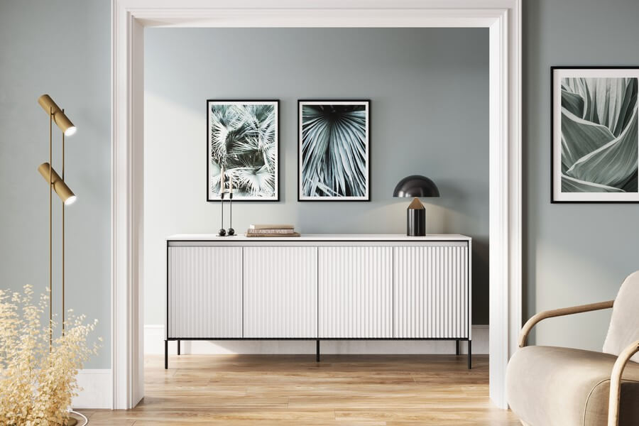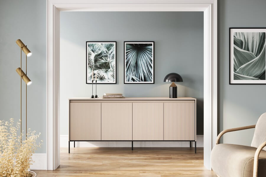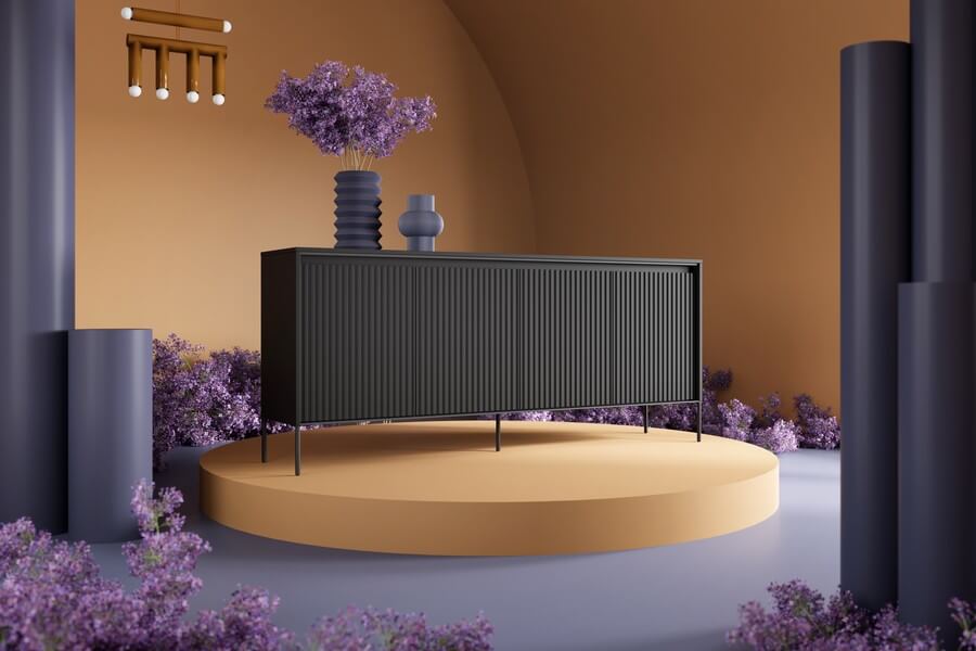 Kolekcja mebli oferuje trzy różne rodzaje ryflowania, które dodają charakteru i wyjątkowości wnętrzom. Każdy najmniejszy detal ma znaczenie, a kolorystyka mebli wpływa na wybór konkretnego rodzaju ryflowania. Fronty mebli w kolorze dąb artisan i czarnym zdobi frezowanie proste, białych i szarych w formie półkoli, natomiast meble w kolorze beżu piaskowego mają charakterystyczny frez w postaci półwałka. Dzięki temu, kolekcja oferuje różnorodne opcje, które pozwalają dopasować meble do indywidualnych preferencji i stylu wnętrza.