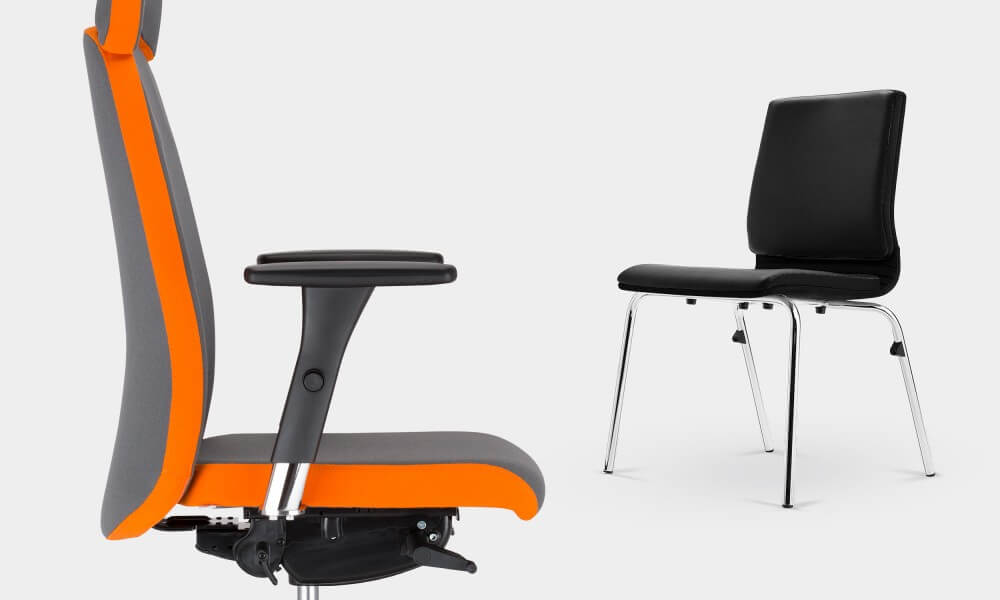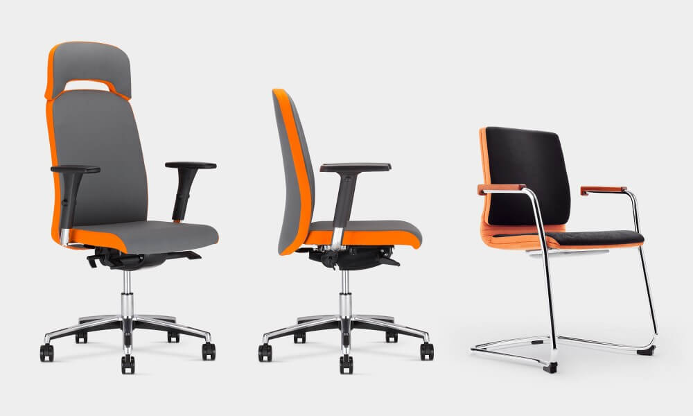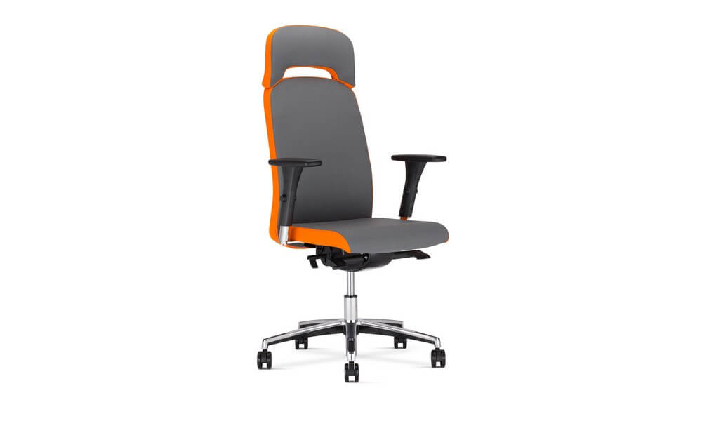 Boki oparcia i zagłówka mogą być tapicerowane w kontrastującym z całością krzesła odcieniu tkaniny. Doskonały mechanizm oraz inteligentna konstrukcja dopasowana do ludzkiego ciała sprawiają, że krzesło zapewnia wygodną i zdrową pozycję zarówno w czasie wytężonej pracy biurowej, jak i w chwilach relaksu.