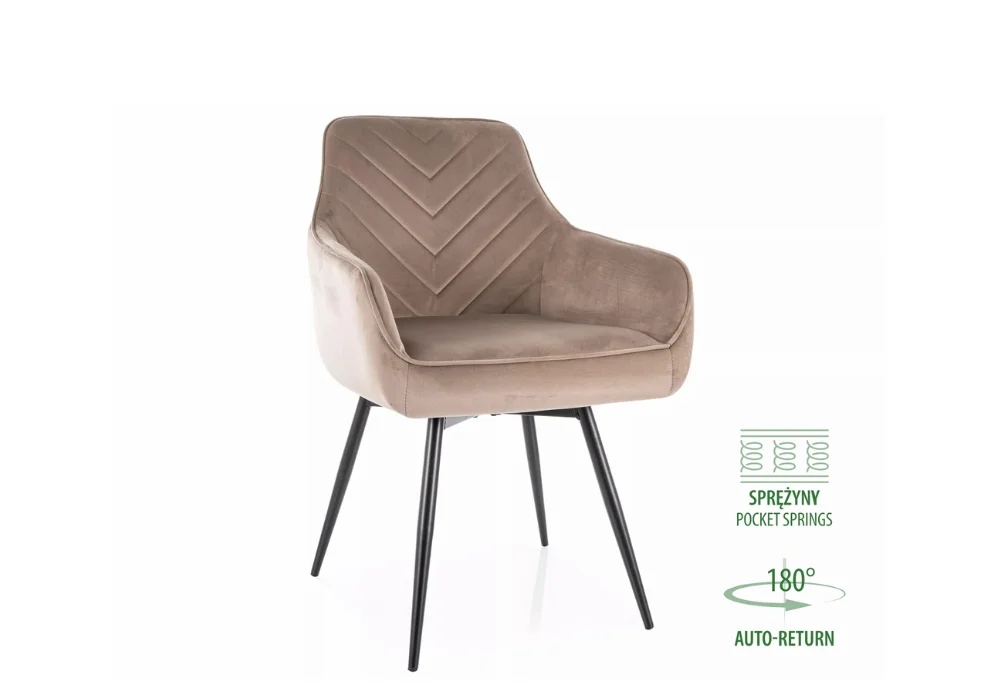 Wbudowany mechanizm obrotowy z funkcją auto-return pozwala na swobodny obrót siedziska o 180° i automatyczny powrót do pozycji wyjściowej, co sprawdza się zarówno przy stole, jak i przy biurku. Stabilna metalowa podstawa oraz sprężyny kieszeniowe w siedzisku dopełniają komfortu, czyniąc z Servio Velvet krzesło, które naprawdę “robi różnicę” w codziennym użytkowaniu.