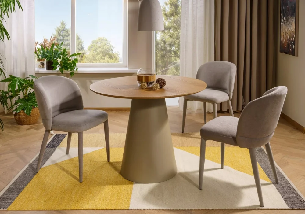 Beżowy odcień subtelnie ociepla aranżację, dodając jej elegancji w nienachalnym wydaniu. To model, który świetnie odnajdzie się w jadalni, salonie czy domowym biurze, naturalnie wtapiając się w różne style wystroju.
