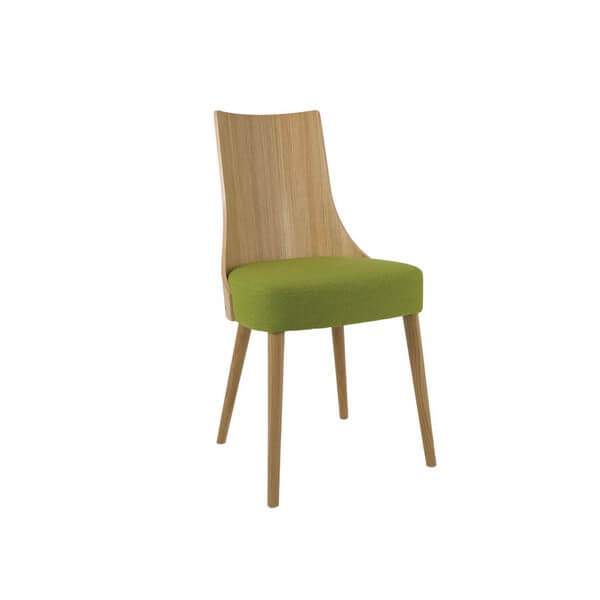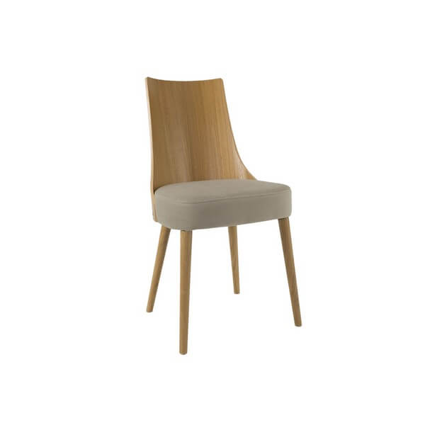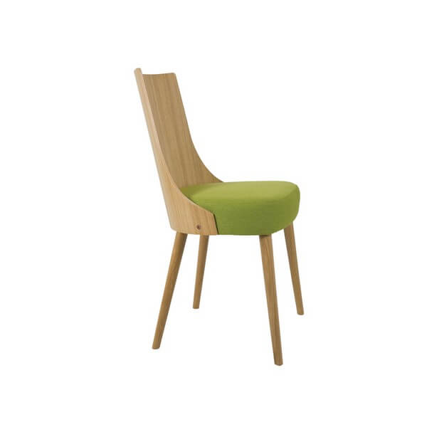 Wyeksponowane naturalne piękno dębu – Lea I. Krzesło dostępne w bogatej palecie barw i tkanin do wyboru. Nogi wykonane z litego drewna.