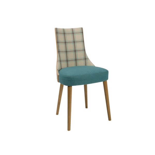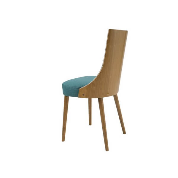 Wyeksponowane naturalne piękno dębu – Lea II z tapicerowanym przodem oparcia. Krzesło dostępne w bogatej palecie barw i tkanin do wyboru. Nogi wykonane z litego drewna.