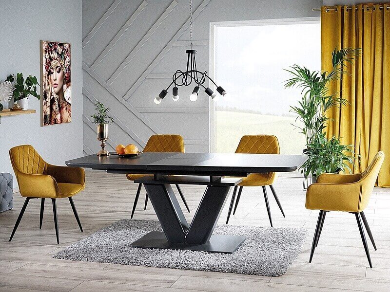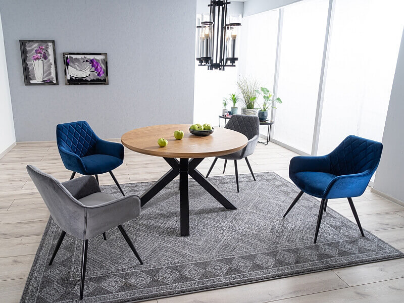 Siedzisko osadzone jest na metalowych nogach w kolorze czarny mat. Uroku dodają dekoracyjne przeszycia wewnątrz krzesła. Krzesło Liena Velvet z pewnością przypadnie do gustu nawet najbardziej wymagającym klientom.