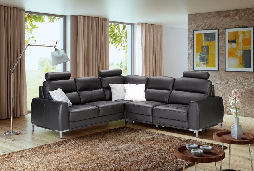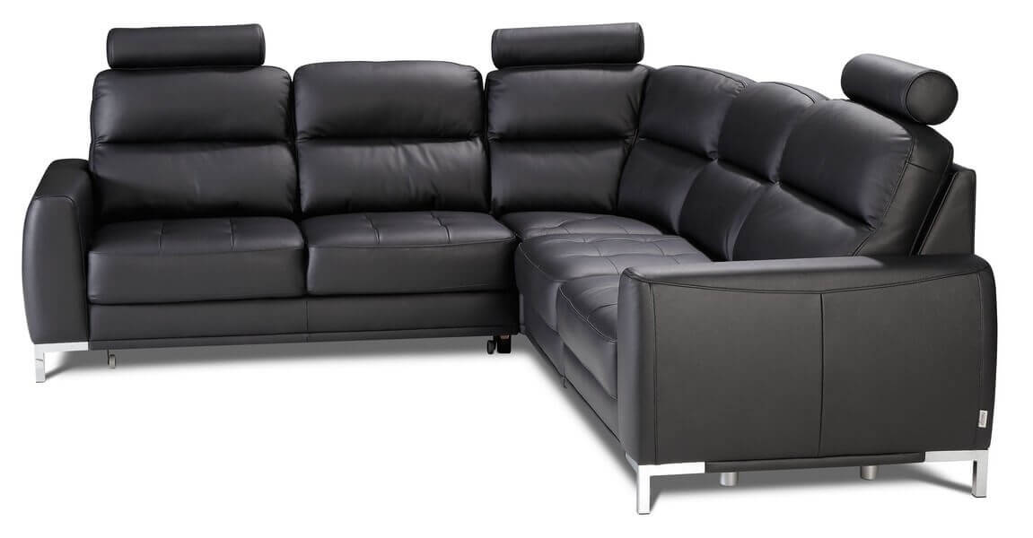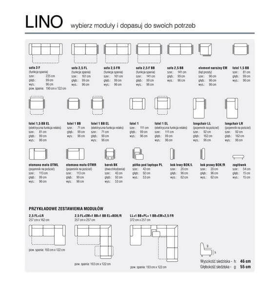 Narożnik modułowy Lino to modna i nowoczesna linia perfekcyjnie wykończona. Na uwagę zasługują charakterystyczne metalowe chromowane nogi (dostępne również kolory: matowy czarny lub miedziany).